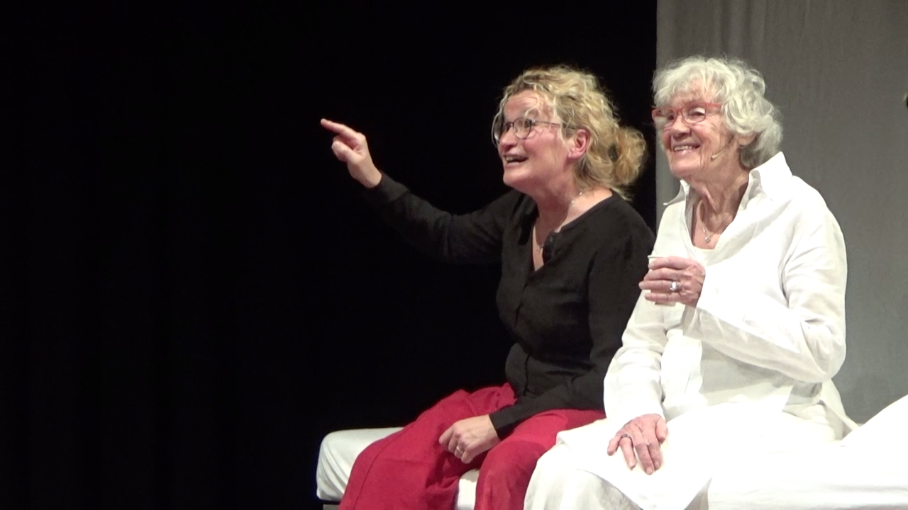 Vrolijk zwierend richting eeuwigheid geven moeder en dochter een energiek beeld van een